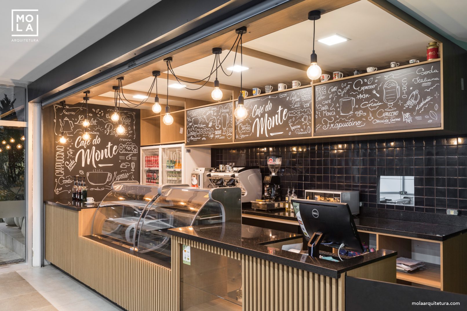 Espaço gastronômico que abastece a sede do IMED em Porto Alegre, o Café do Monte foi desenvolvido pela Mola Arquitetura desde a concepção da marca ao projeto arquitetônico. O espaço foi concebido através de premissas de um espaço despojado e integrado às áreas comuns adjacentes a ele. A ideia de um ambiente descontraído se sustenta principalmente no público alvo da cafeteria, o qual é composto principalmente por universitários.