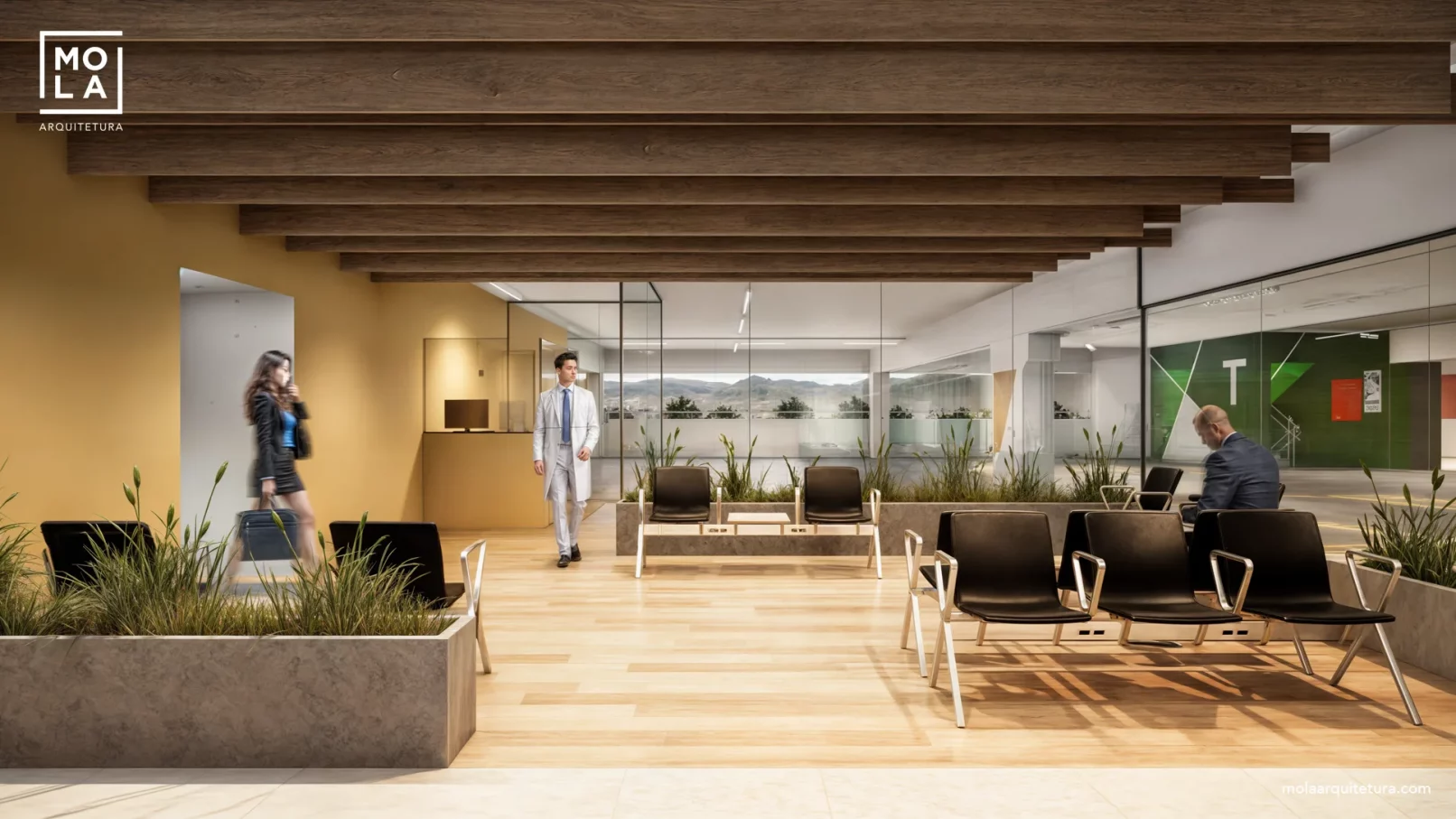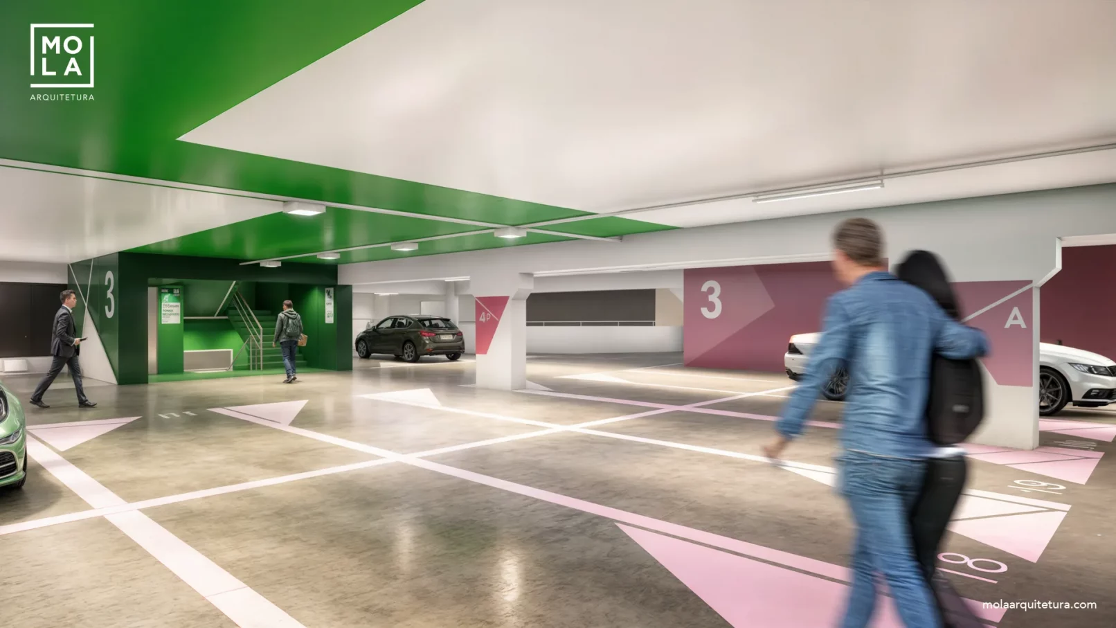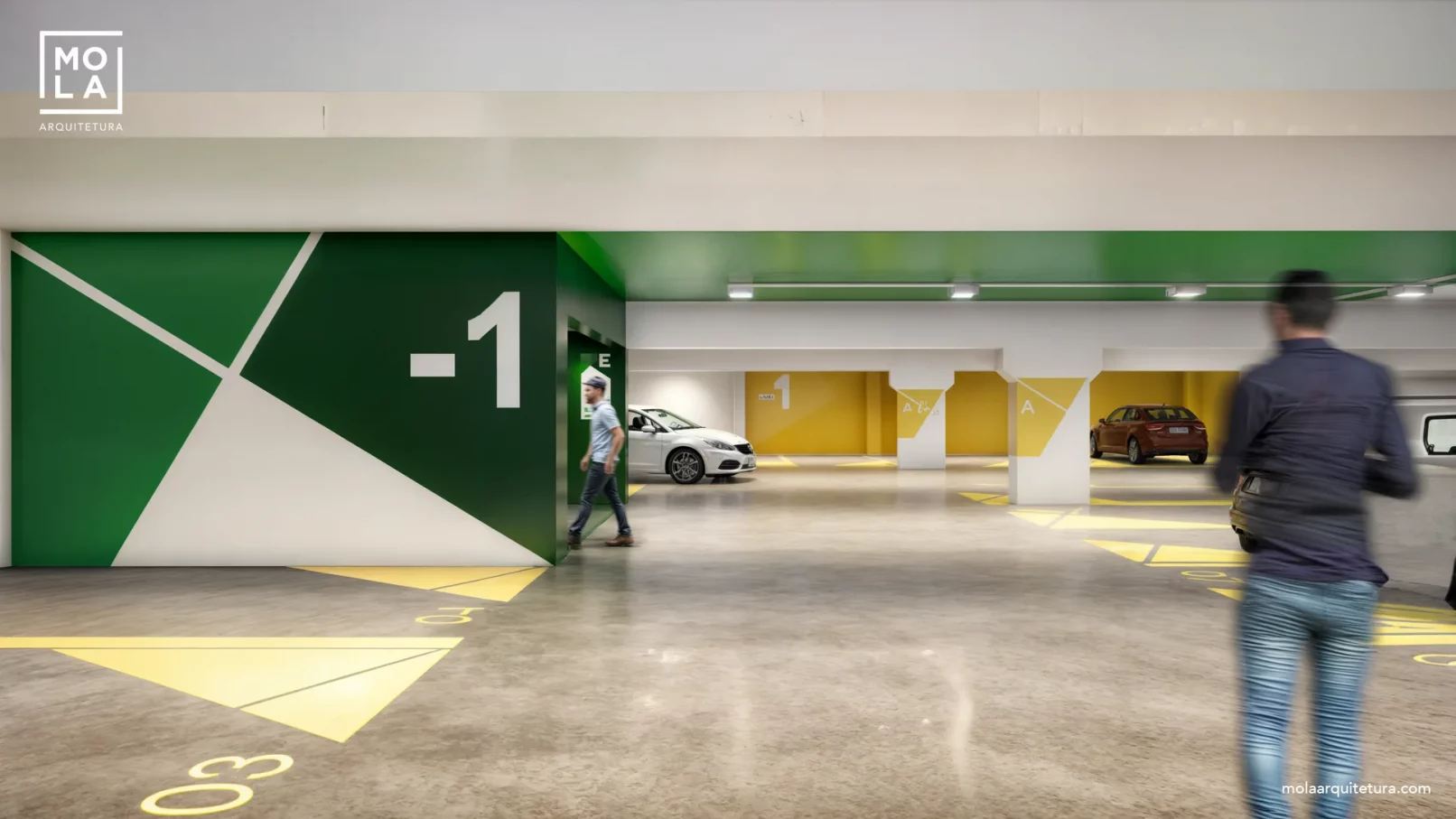 O projeto arquitetonico e wayfinding desenvolvido para o estacionamento e pórticos do hospital faz uso de cores e grafismos vibrantes para melhorar a experiência de estacionar em uma garagem. Cada elemento do projeto gráfico é uma referência ao contexto local, do novo sistema de wayfinding criado pela molaarquitetura para a Rede de hospitais Divina provicencia. O projeto conta ainda com um esquema de iluminação que ajuda a identificar os caminhos dentro do estacionamento assim como uma confortável área de espera dentro do mesmo.
