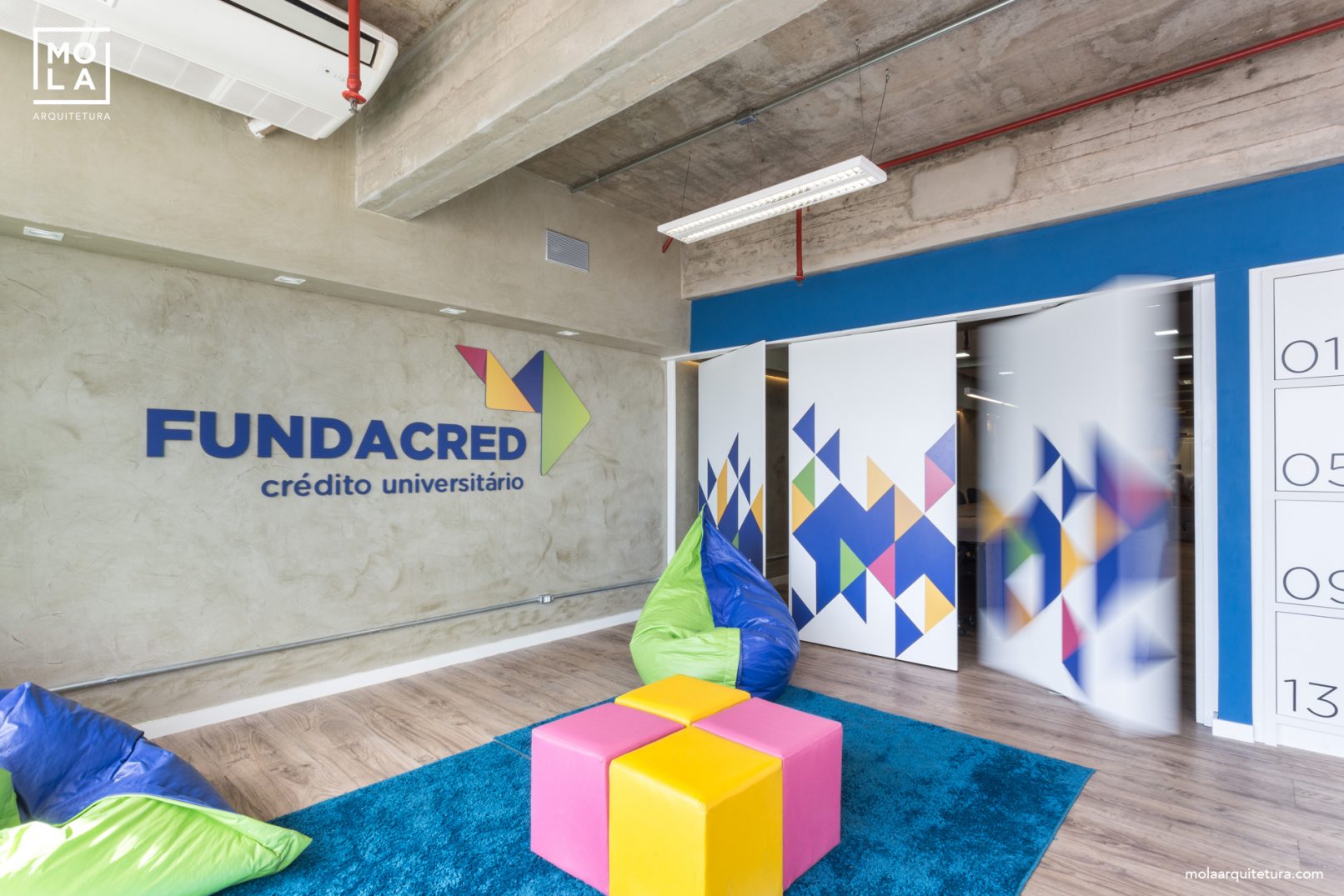O retrofit da sede da Fundacred começou a ser reformulado pela MolaArquitetura em 2014, sendo dividido em fases. Todo o projeto foi minuciosamente estudado a partir do entendimento dos processos da empresa, da relação dos setores, e da necessidade para qualificar não só espaços, mas a experiência dos colaboradores em seus ambientes de trabalho.