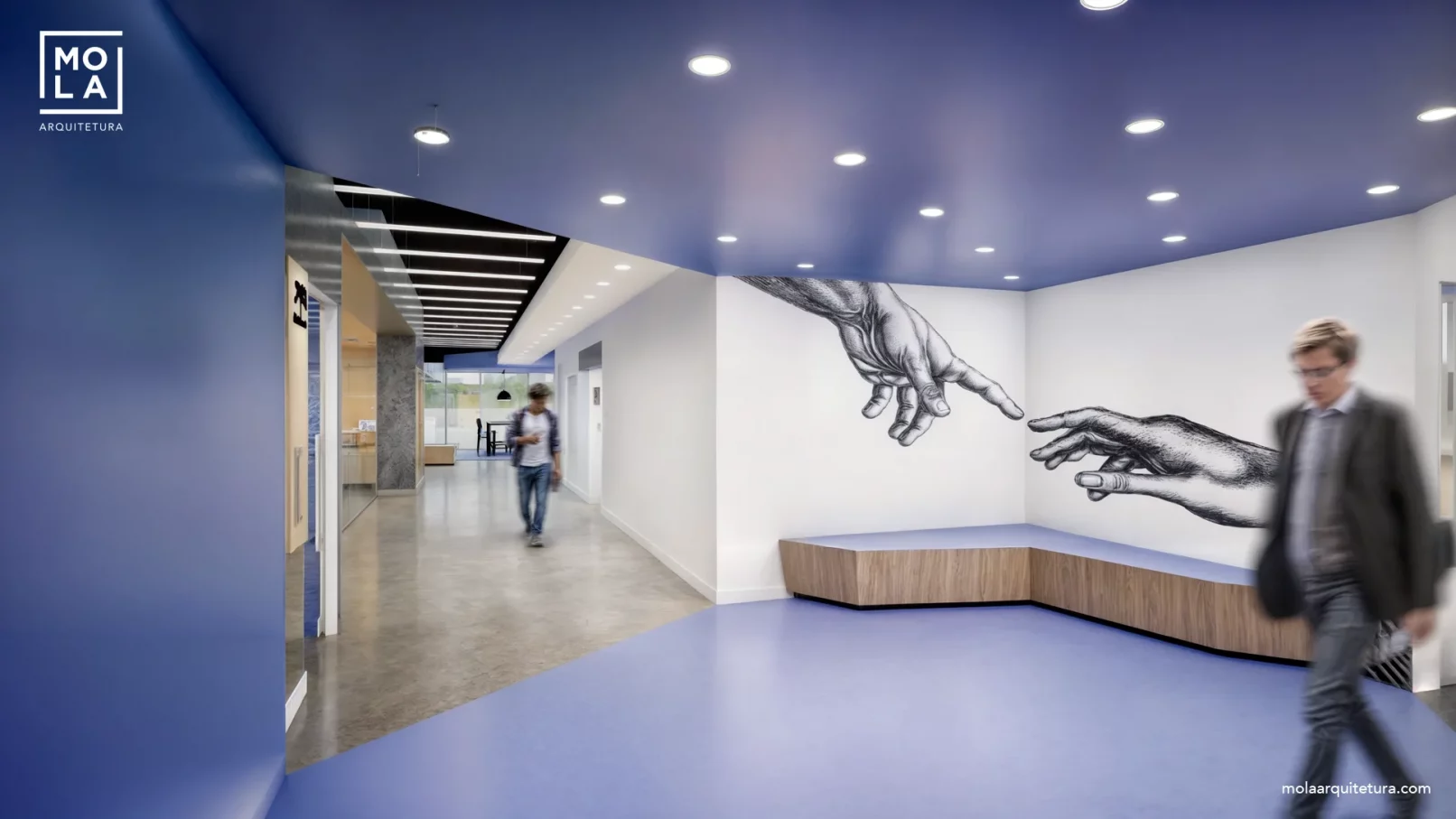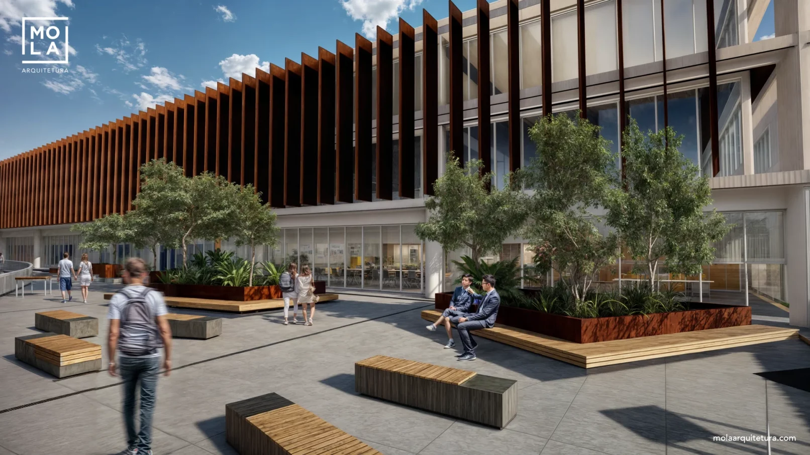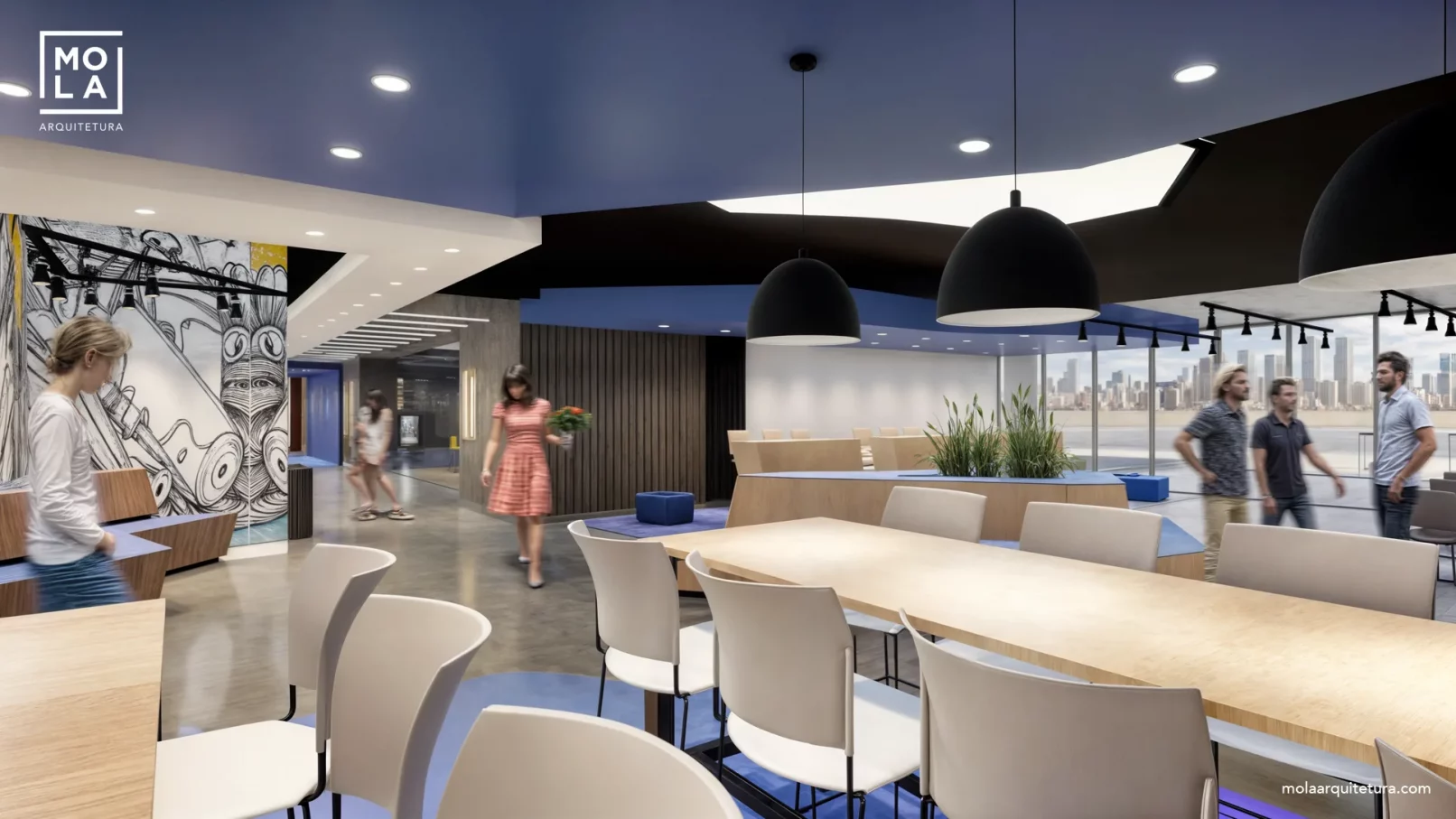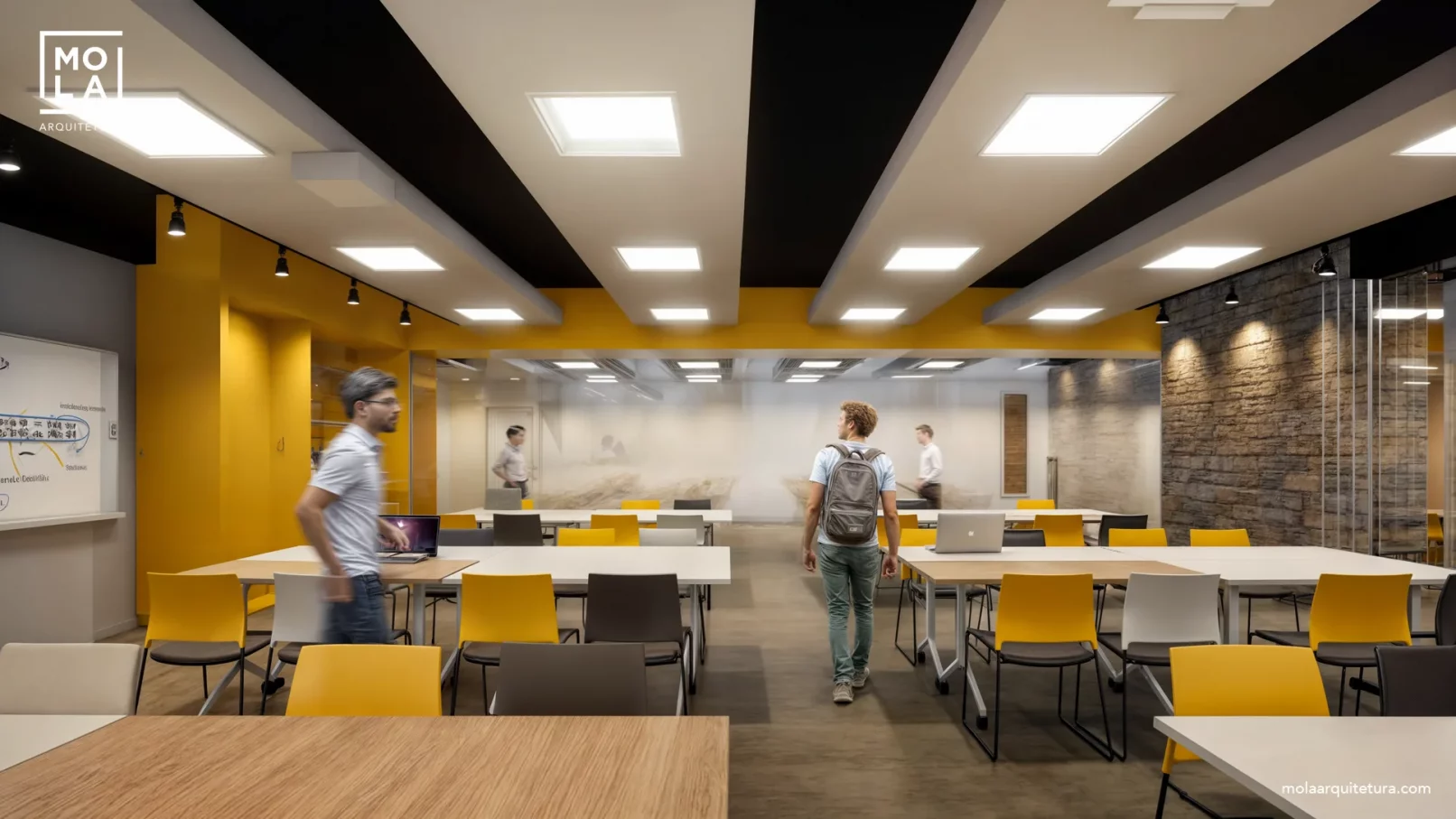 Em novo projeto de arquitetura educacional, novamente em parceria com a IMED, desta vez em um dos novos empreendimentos da Goldzstein Cyrela em Porto Alegre. O principal desafio da Mola Arquitetura para esta sede da universidade foi como trazer a linguagem disruptiva das demais sedes, bem como abrigar todo o programa em um edifício de formato alongado, sem que os espaços ficassem monótonos. Para cumpri-lo, buscamos alternar espaços de estar e permanência com espaços de estudo, além de criar jogos entre superfícies opacas e translúcidas, o que contribui na concepção de um espaço mais aconchegante e adaptado à escala humana.
